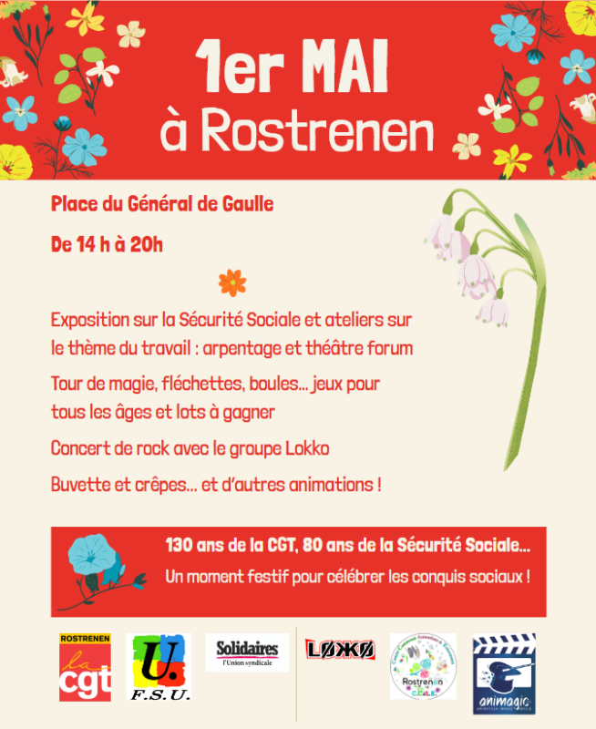 Évènement organisé par l’Union Locale CGT Rostrenen, Solidaires et FSU, en partenariat avec le CCAE de Rostrenen.