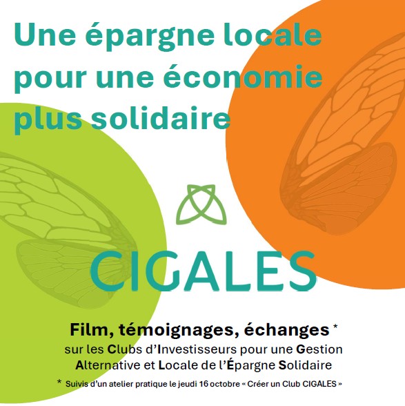 - Le jeudi 16 octobre après-midi : atelier pratique de création d’un club CIGALES (sur inscription au 09.72.63.30.35), guidé pas à pas par les intervenants