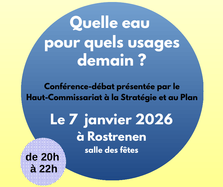 Le Haut-Commissariat à la Stratégie et au Plan et l’association Eau et Rivières de Bretagne ont le plaisir de vous inviter à participer à la conférence-débat qui aura lieu à la salle des fêtes Guillaume le Caroff à Rostrenen, le 7 janvier 2026 de 20h à 22h :