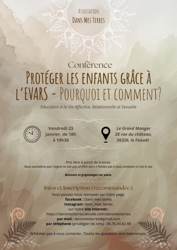 L’EVARS, Education à la Vie Affective, Relationnelle et Sexuelle, est au cœur de nombreux débats, mais est aussi désormais un programme détaillé par le gouvernement. Chaque enfant doit désormais bénéficier de 3 séances par année d’Education à la Vie Affective, Relationnelle et Sexuelle définies dans un programme clair. Cette conférence a pour but de présenter ce qu’est l’EVARS et ce que sont les enjeux de ces thématiques éducatives.