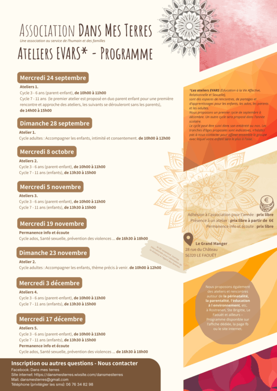 Les ateliers EVARS (Education à la Vie Affective, Relationnelle et Sexuelle), sont des espaces de rencontres, de partages et d’apprentissages pour les enfants, les ados, les parents et les adultes.
