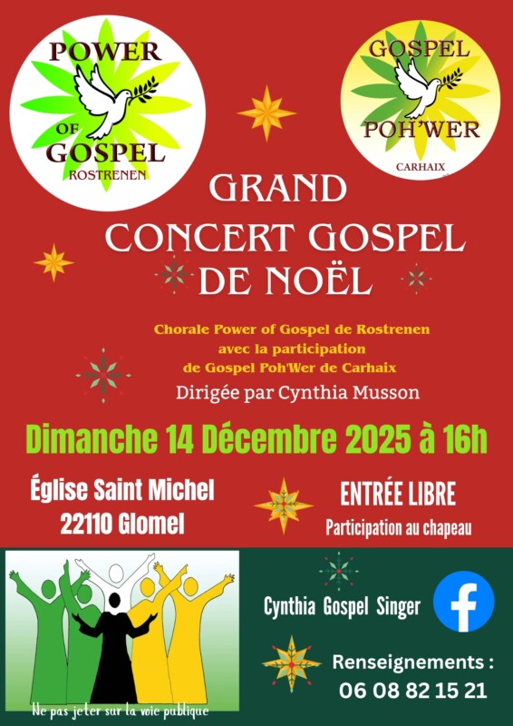 Venez partager et participer à un grand moment de réjouissance avec la Chorale Power of Gospel de Rostrenen (à découvrir) dirigée par Cynthia Musson avec la participation de Gospel Poh’Wer de Carhaix.
