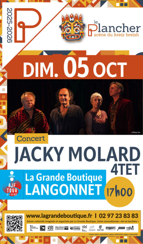 Le dimanche 5 octobre 2025 à 17h00 à La Grande Boutique à Langonnet, dans le cadre de la saison culturelle Le Plancher et de l’Atlantique Jazz Festival. Tarifs : 10€/5€/Gratuit -18 ans