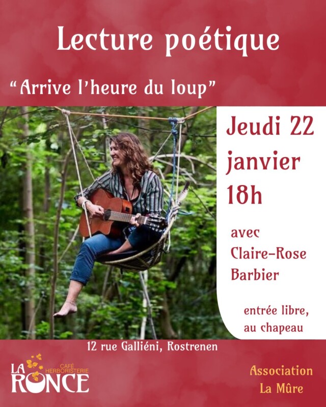 RDV à l’herboristerie-café la Ronce à Rostrenen, à 18h, pour découvrir son œuvre autour d’une chaude tisane de la Ronce.