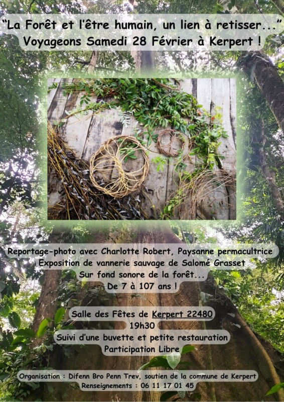Suite au succès de notre précédent événement “La Forêt et l’Océan, un lien à explorer” (avec Emmanuelle Sultan, océanographe, et l’artiste Olivia Lomenech Gill), nous voulons poursuivre l’aventure ensemble le Samedi 28 Février 2026 avec une thématique complémentaire “La Forêt et l’être humain, un lien à retisser”, avec pour invitées Charlotte Robert, permacultrice et paysanne, et Salomé Grasset, vannière.