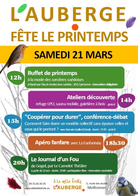 A l’occasion de l’assemblée générale du Village Coopératif, l’auberge A la belle étoile de Mellionnec propose une journée festive et constructive ouverte à toustes.
