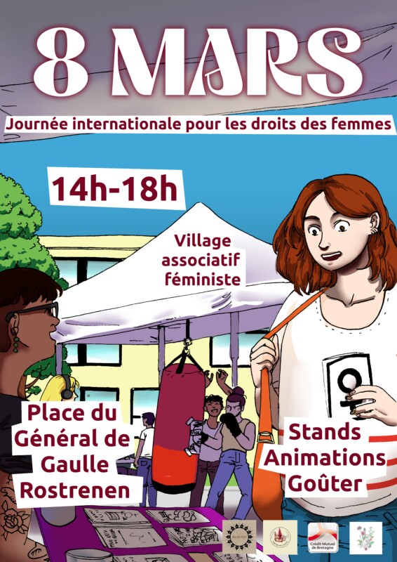 Le dimanche 8 mars à Rostrenen, Antidotes, accompagné d’autres associations et syndicats (Dans mes Terres, la CGT, Solidaires, la chorale la Mutine) organise un village associatif à l’occasion de la journée internationale pour les droits des femmes et des minorités de genre. De 14h à 18h, auront lieux des animations et des prises de parole place du général de Gaulle. Un goûter sera proposé prix libre par la cantine la Dalle.