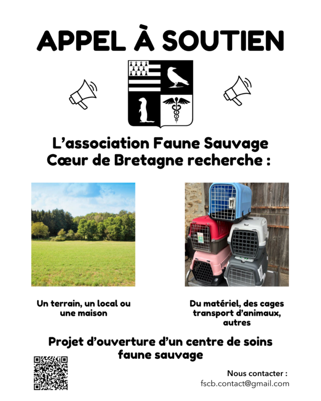 Nous sommes à la recherche de personnes voulant s’investir dans un projet de création d’un centre de soins dédiés à la faune sauvage dans le Kreiz Breizh.