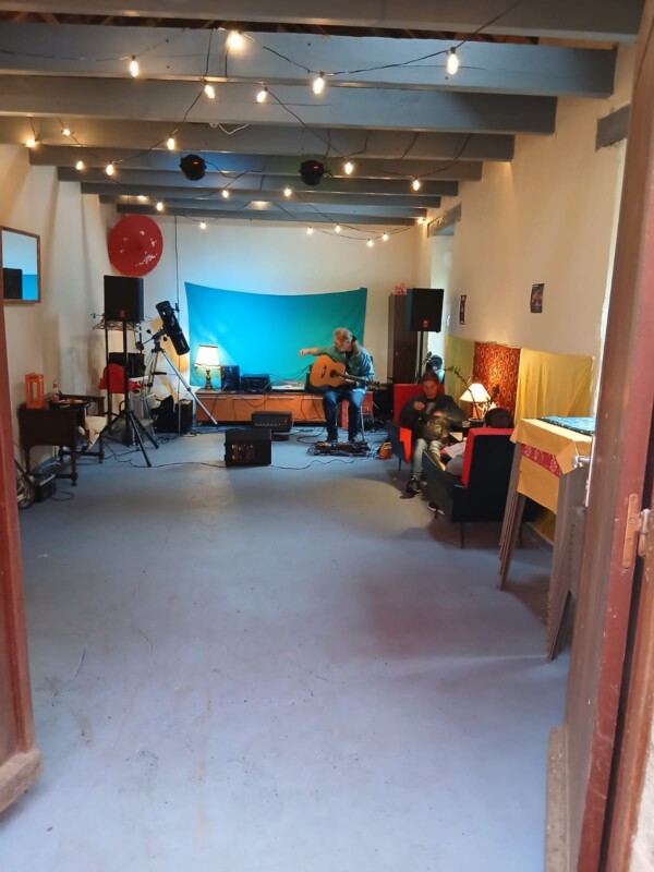 En gros, on a une pièce de 40m2 dont les murs pourraient quasi exclusivement servir à l’exposition (cf. photo de l’article) . Ce lieu nous sert de terrasse couverte/café/salle de concert quand le temps est capricieux. Il y a donc pas mal de passage pendant la saison. Il y a aussi possibilité d’imaginer des choses en extérieur et/ou dans la maison principale.