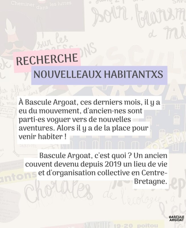 À Bascule Argoat, ces derniers mois, il y a eu du mouvement, d’ancien·nes sont parti·es voguer vers de nouvelles aventures. Alors il y a de la place pour venir habiter !